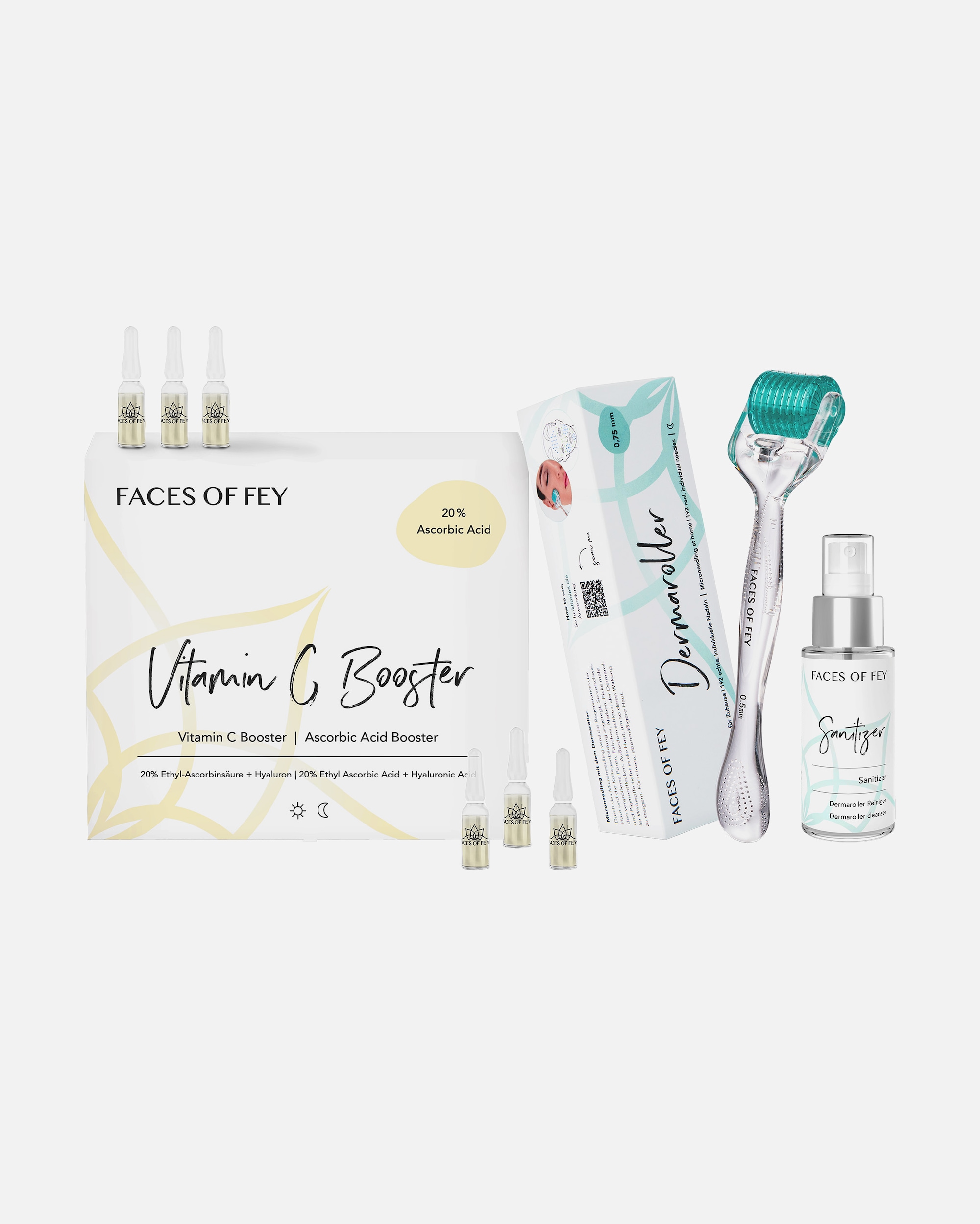 FACES OF FEY bringt deine Gesichtspflege-Routine auf ein ganz neues Level: Mit den Produkten der Brand gönnst du dir professionelle Kosmetik-Behandlungen auch zu Hause. Kernstück des Sortiments von FACES OF FEY ist der Dermaroller. Mit ihm verwöhnst du deine Haut in der Tiefe. Hochkonzentrierte Beauty-Produkte wie Seren und Cremes runden das Hautpflege-Konzept der Brand ab.