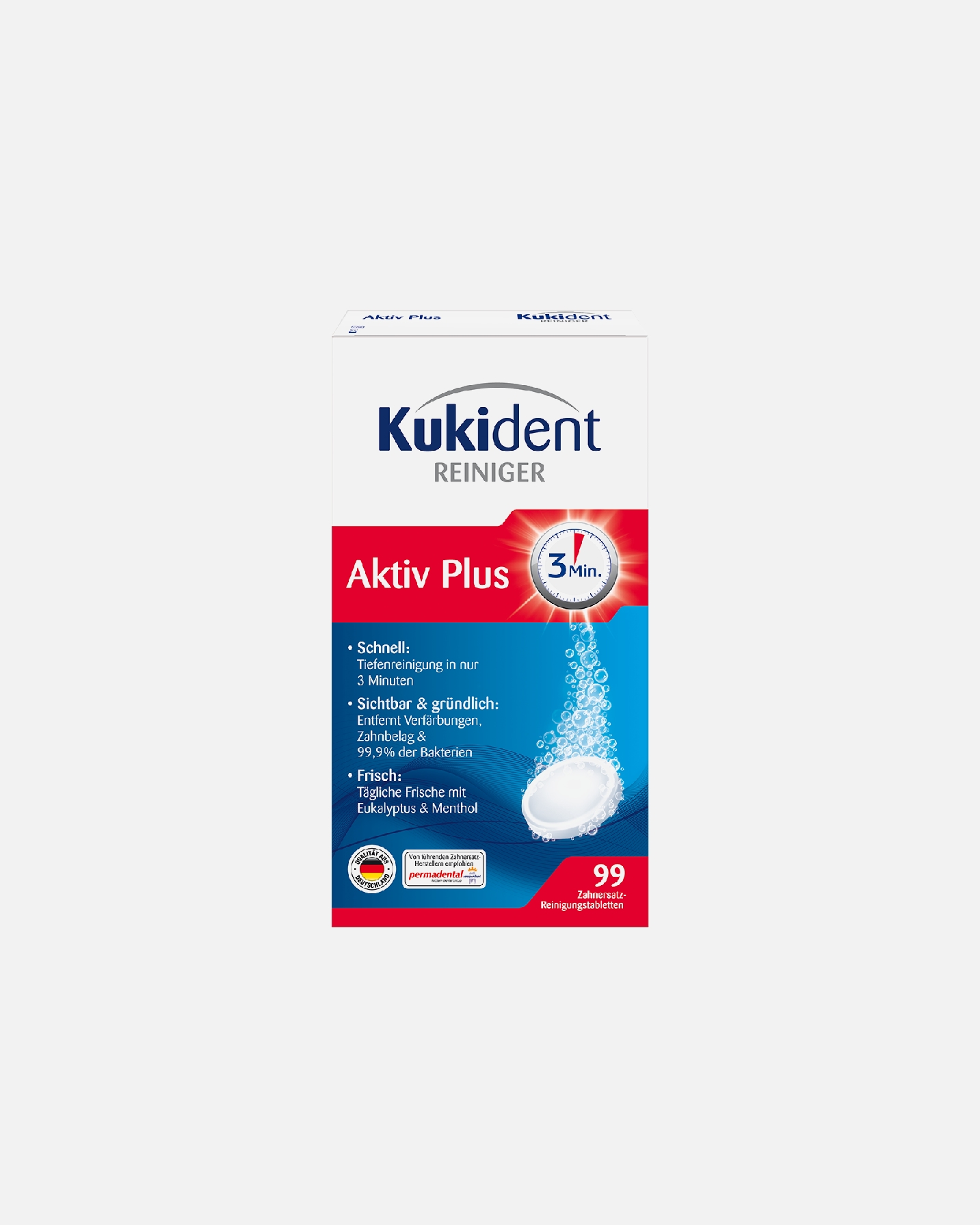 Auch im Alter musst du nicht auf strahlend weiße Zähne verzichten. Statt deine „Dritten“ zu putzen, greifst du zu einem Klassiker der Zahnreinigung: Kukident. In nur wenigen Minuten verpasst du deinem Zahnersatz eine Tiefenreinigung. Kukident kann aber mehr als reinigen. Mit der Haftcreme der Traditionsmarke bleiben deine Zähne stets an ihrem Platz.