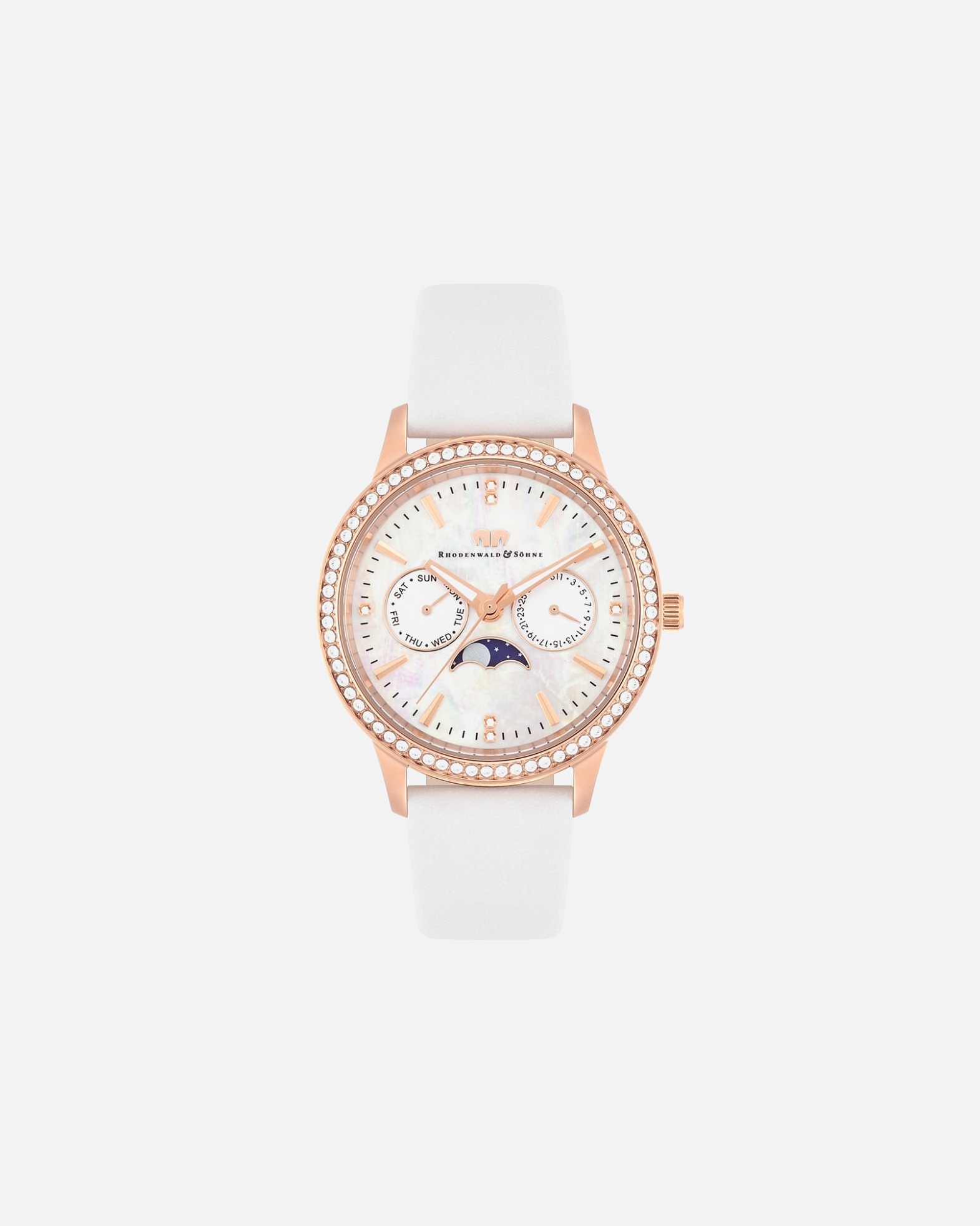 Die Brand begeistert mit einer breitgefächerten Produktpalette an Damen- und Herrenuhren. Das Sortiment umfasst sowohl klassische Modelle in Gold und Silber als auch extravagante Armbanduhren. Rhodenwald & Söhne Uhren mit hochwertigen Lederarmbändern schmiegen sich angenehm ans Handgelenk. Kontrastierende Zifferblätter sorgen für einen aufregenden Eyecatcher-Moment. Die sportlichen Ausführungen haben zusätzliche Features wie Datumsanzeigen und Stoppuhren – und begleiten dich so zuverlässig durch den Alltag. Mit Kristallen verzierte Damenuhren von Rhodenwald & Söhne wirken besonders glamourös und veredeln jeden Look.