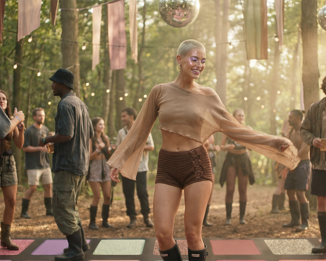 Einfach den Kopf ausschalten und unbeschwert tanzen – ein Festival-Gefühl, das dein tiefstes Strahlen aus dir herausholt! Betone es.
