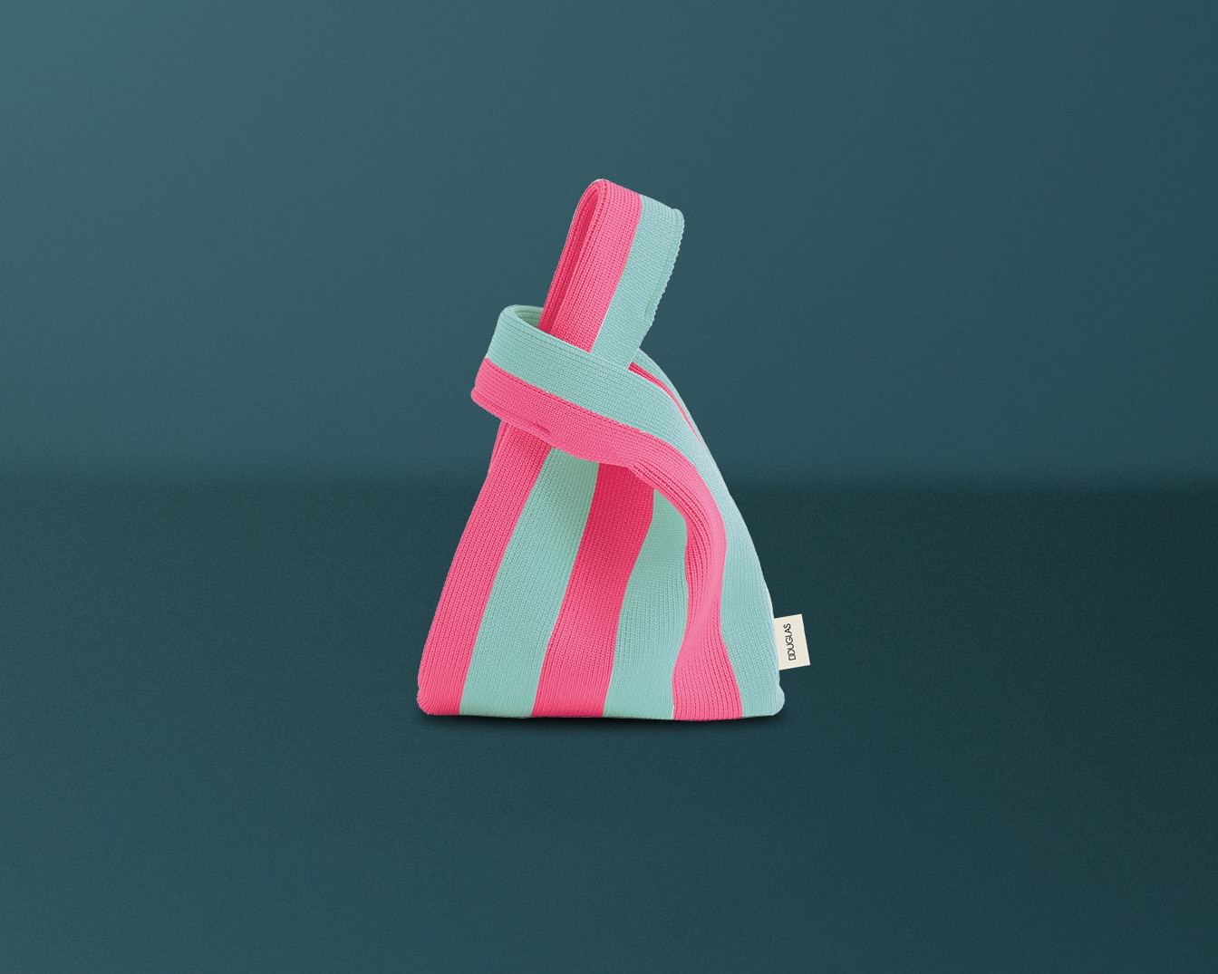 Die gestreifte, hellgrün-pinke Tasche mit kurzem Henkel ist ein echter Hingucker.